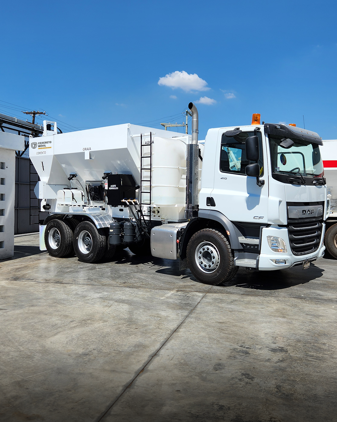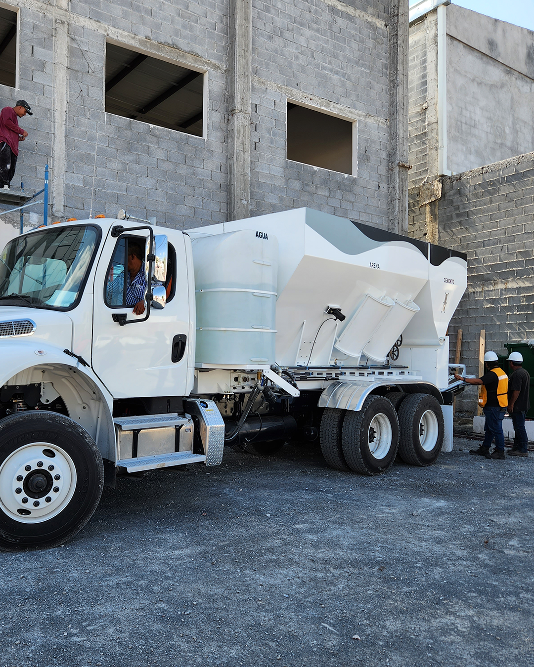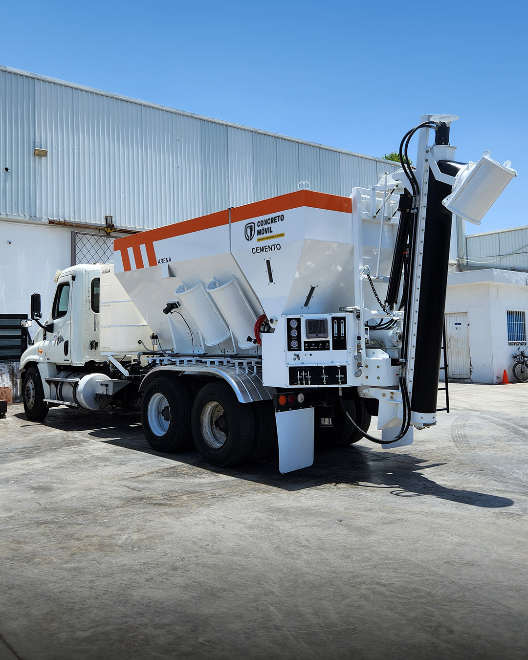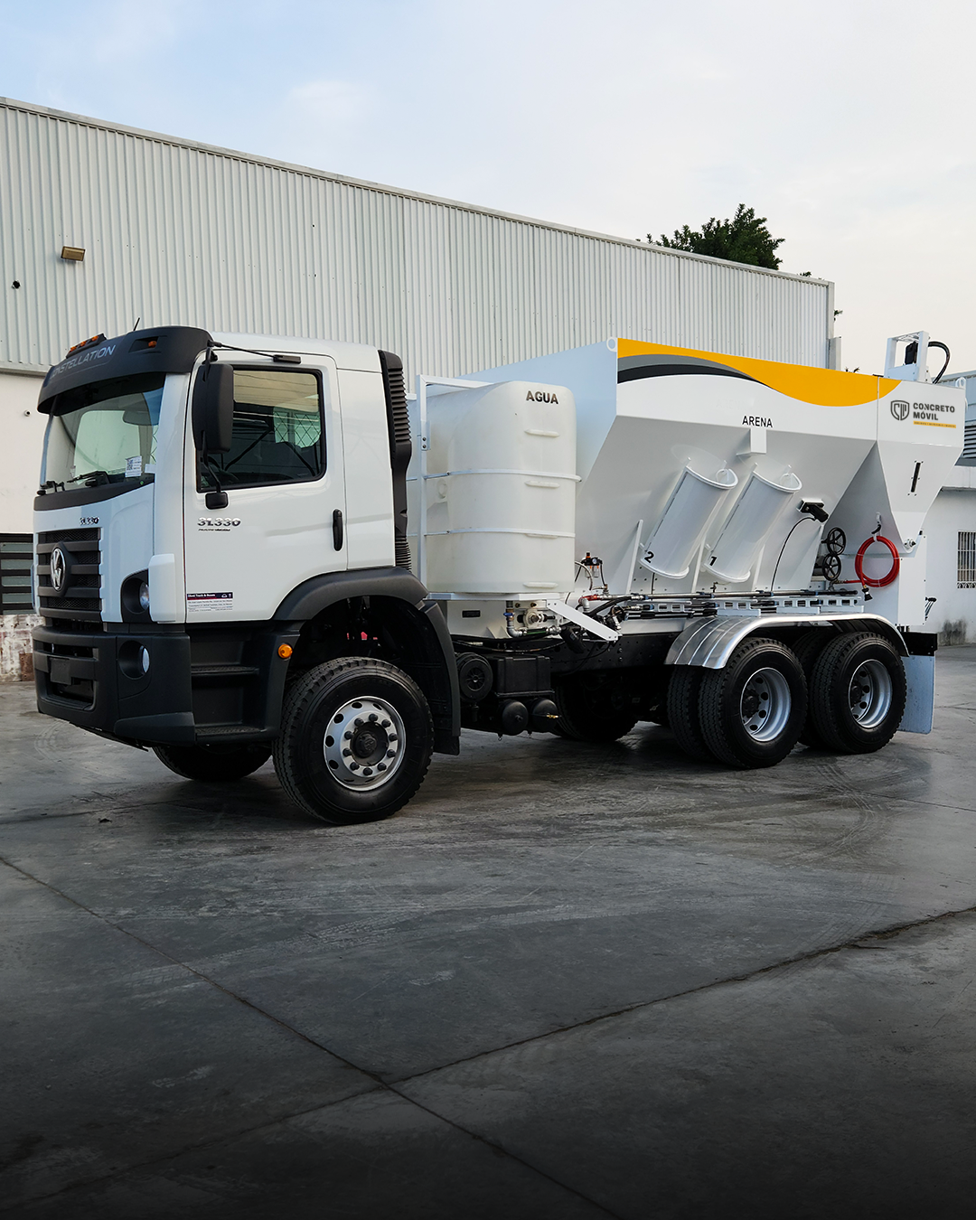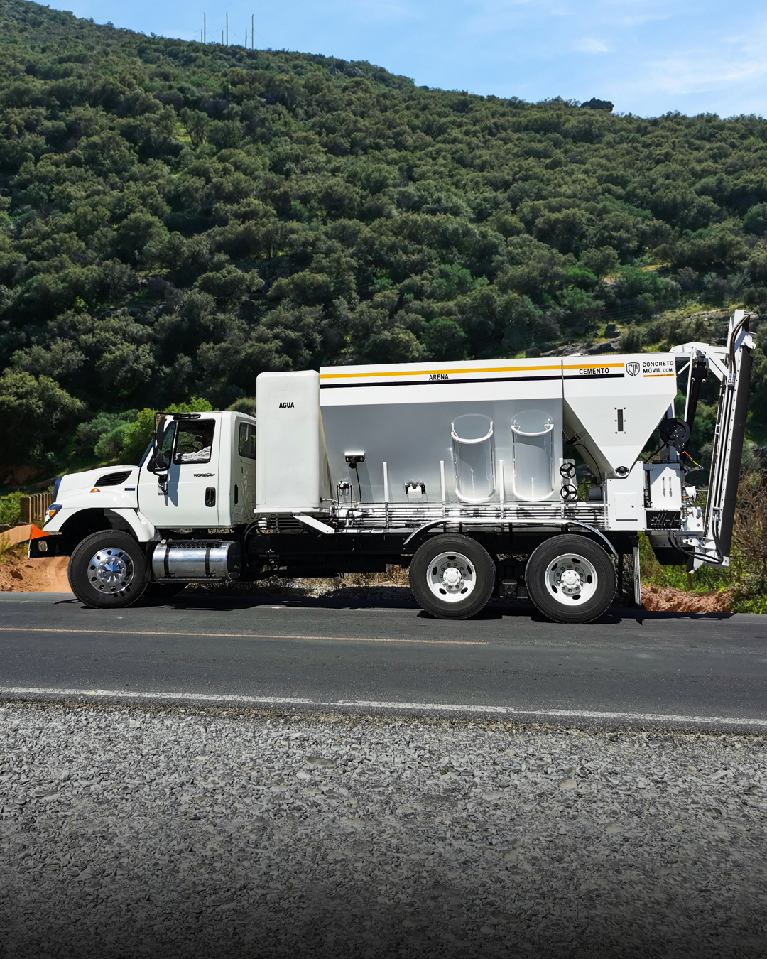Es un equipo montado sobre un camión, chasis o remolque, el cual tiene la versatilidad de producir concreto en sitio desde 1 m3, homogeneizando solo la cantidad que se requiere colar.